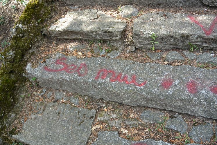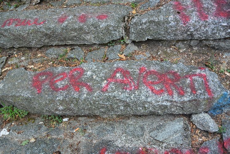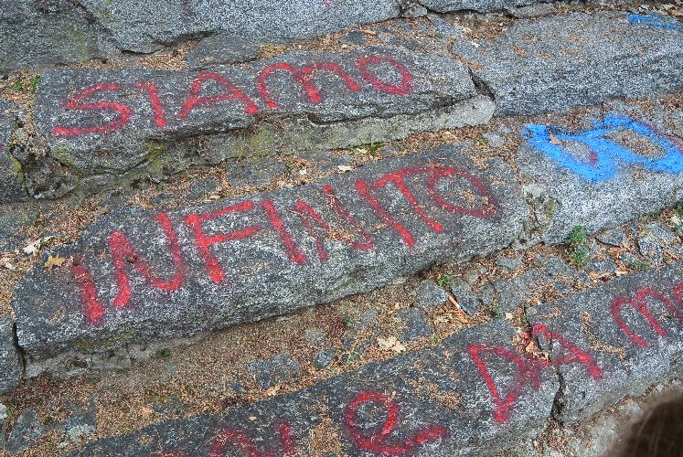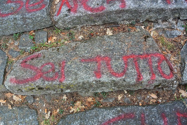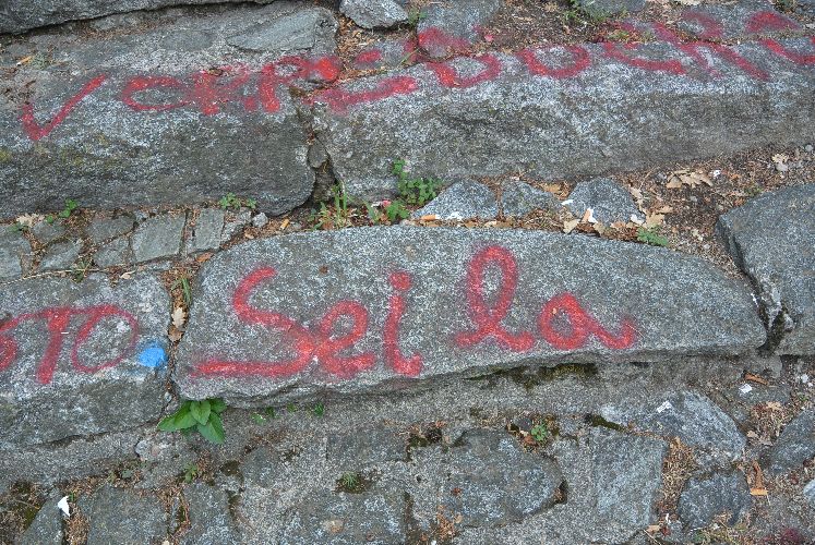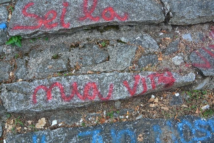 Per la prima è stata scelta nientepopodimenochè la scalinata del monumento ai Caduti in cima a corso XXV Aprile, il monumento di Giuseppe Terragni. Sui gradini dietro al cannone, infatti, è comparsa una lunga dedica d’amore scritta probabilmente da un ragazzo alla sua dolce metà come una sorta di “conferma” del proprio sentimento.