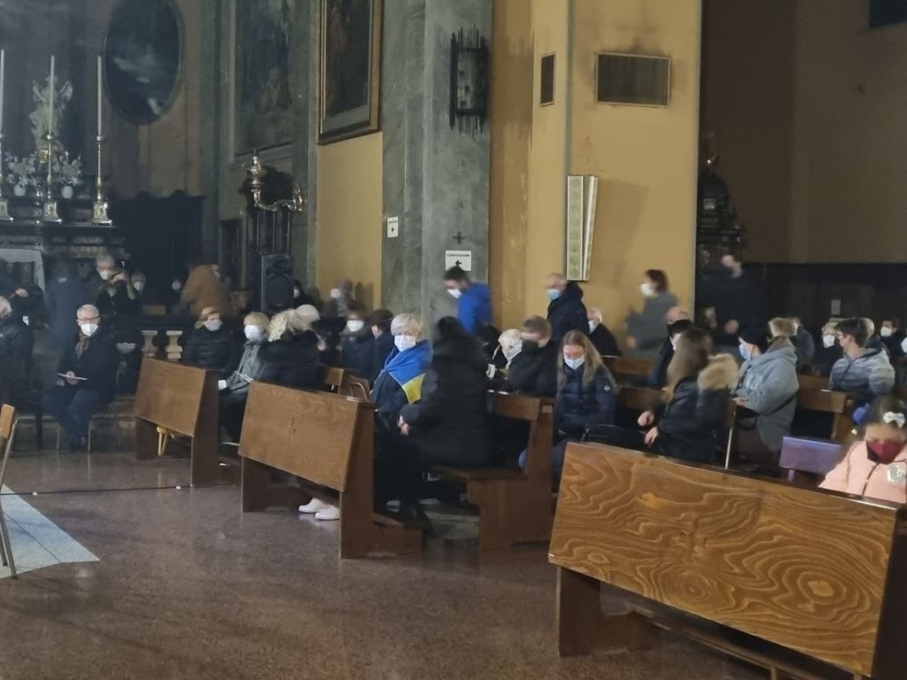 Monsignor Angelo Pirovano, davanti ai numerosissimi fedeli, ha detto : “Siamo qui accogliendo l’invito del Papa in questa giornata di digiuno e preghiera. Vogliamo mostrare vicinanza al popolo ucraino, ma anche invocare la pace. Chiediamo al Signore di renderci artefici di pace e di aiutare anche gli altri a esserlo”. Presenti con Monsignore anche don Ettore Dubini, don Claudio Fossa e don Bruno Borrelli.