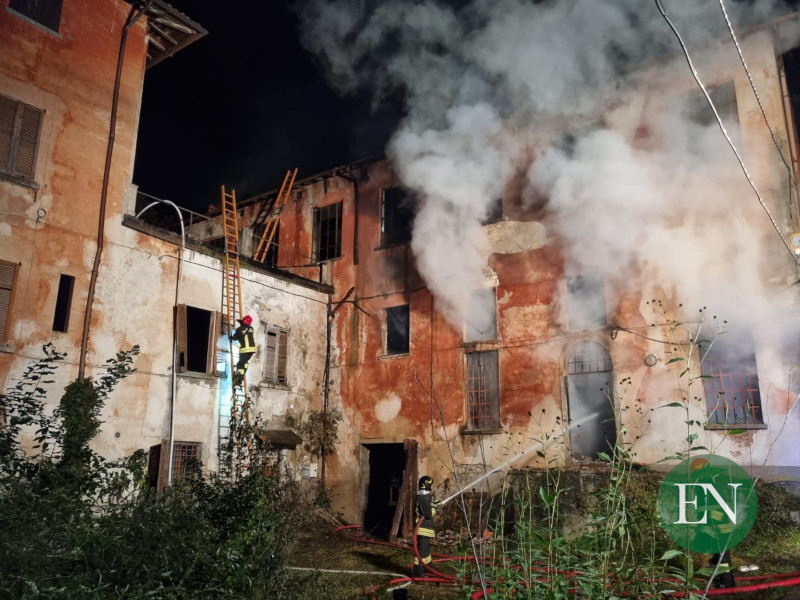 ERBA – Maxi incendio nella notte di oggi, giovedì 27 ottobre, via Garibaldi a Erba, nell’edificio abbandonato che anni fa ospitava la sede dell’associazione NoiVoiLoro.