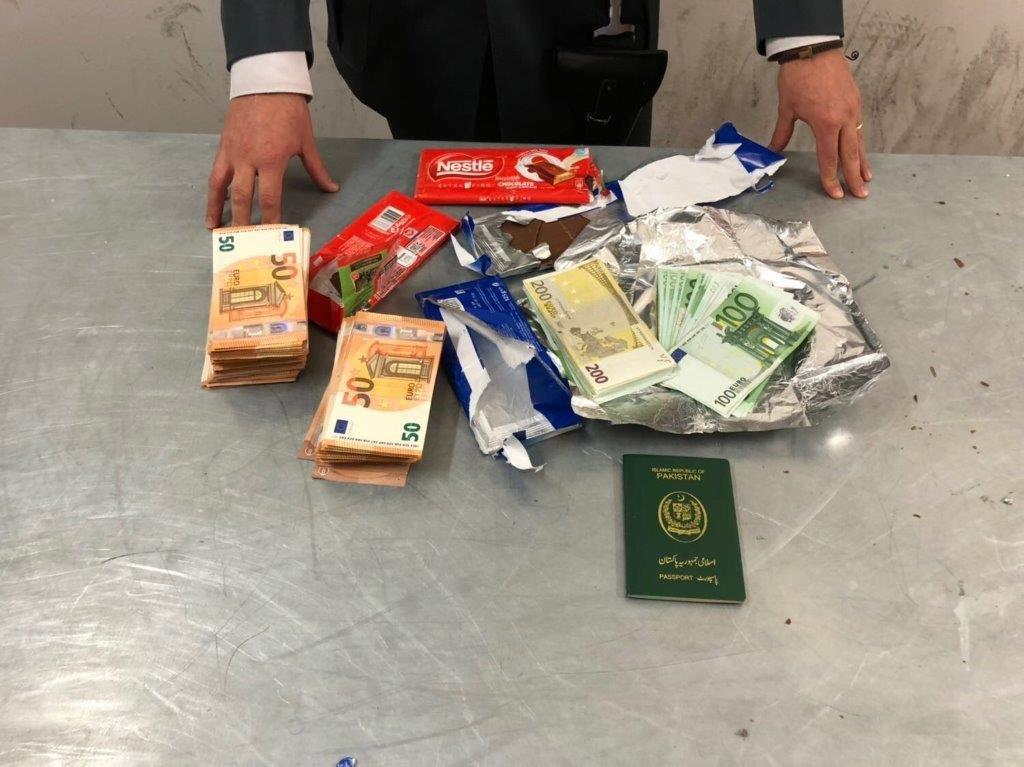 Il passeggero fermato, un cittadino pakistano di 38 anni residente in Spagna, alla domanda di rito se trasportasse al seguito denaro, titoli o valori mobiliari eccedenti il limite consentito (10.000 euro) rispondeva, come nella maggior parte dei casi, di non avere con sé nulla.