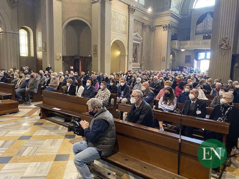 ALBAVILLA – Gremita di persone la chiesa parrocchiale di Albavilla oggi pomeriggio, martedì 19 aprile, per l’ultimo saluto a Don Mario Galbiati scomparso lo scorso 13 aprile all’età di 92 anni. In tantissimi hanno voluto omaggiare il sacerdote, fondatore di Radio Maria e Radio Mater. Profondo amante della musica e del basket – proprio a lui si deve, tra le altre cose, la nascita del Basket Albavilla – Don Mario è stato ricordato per la sua personalità creativa e brillante e per il suo carattere indomito. “La gente ti ha voluto bene – il ricordo di Tarcisio, nipote di Don Mario – eri travolgente, non ti fermavi mai”.