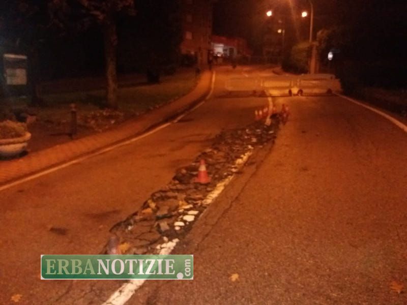 Oltre il vento, anche la pioggia ha fatto la sua parte: i pompieri sono intervenuti per tombini saltati, qualche allagamento e altri disagi. A Ponte Lambro in serata via XI Febbraio è stata completamente chiusa al traffico a causa del cedimento dell’asfalto al centro della carreggiata, verosimilmente dovuto alla troppa pioggia caduta in poche ore.