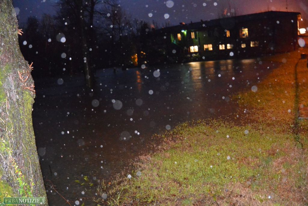 Si trova già letteralmente “a galla” dal pomeriggio di sabato la frazione di Baggero, a Merone, dove i problemi maggiori li crea il Bevera. In piazza lavorano incessantemente gli uomini della Protezione civile con l’ausilio di pompe. La zona è praticamente isolata con sacchi di sabbia e i residenti entrano ed escono da casa servendosi di una passerella.
