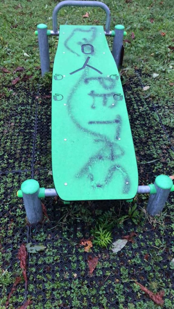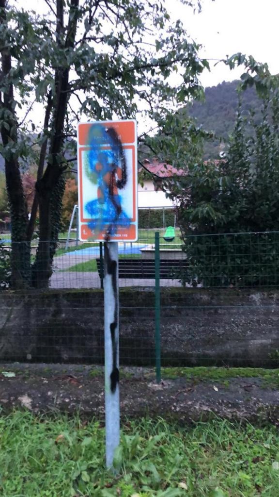 EUPILIO – Vandali in azione in paese: nella notte tra lunedì e martedì scorso ignoti hanno imbrattato diverse zone del paese, la scuola, la palestra, i muri dell’ex convento delle suore, persino lo scuolabus: scritte volgari disegni osceni e svastiche hanno deturpato numerosi punti, ma non solo: “In questi giorni purtroppo abbiamo potuto appurare che gli atti di vandalismo hanno interessato anche l’area fitness al parco, i parcometri e la segnaletica stradale – fa sapere l’amministrazione comunale su facebook – e, ancor più grave, sono stati divelti alcuni paletti e lanciati in mezzo alla strada. Per fortuna nessuno si è fatto male”.