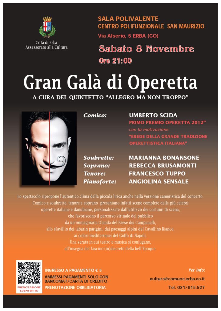 ERBA –  Il prossimo sabato 8 novembre, alle ore 21:00, la Sala Polivalente del Centro Polifunzionale San Maurizio (Via Aleserio, 5 – Erba) ospiterà un evento imperdibile per gli amanti della musica leggera e del teatro musicale: il Gran Galà di Operetta, a cura del quintetto “Allegro ma non troppo”.
