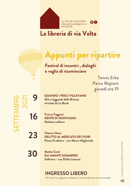 Tutti i giovedì di settembre, dal 9 al 30, al Tennis Erba tornano “Appunti per ripartire, festival di incontri e dialoghi”.