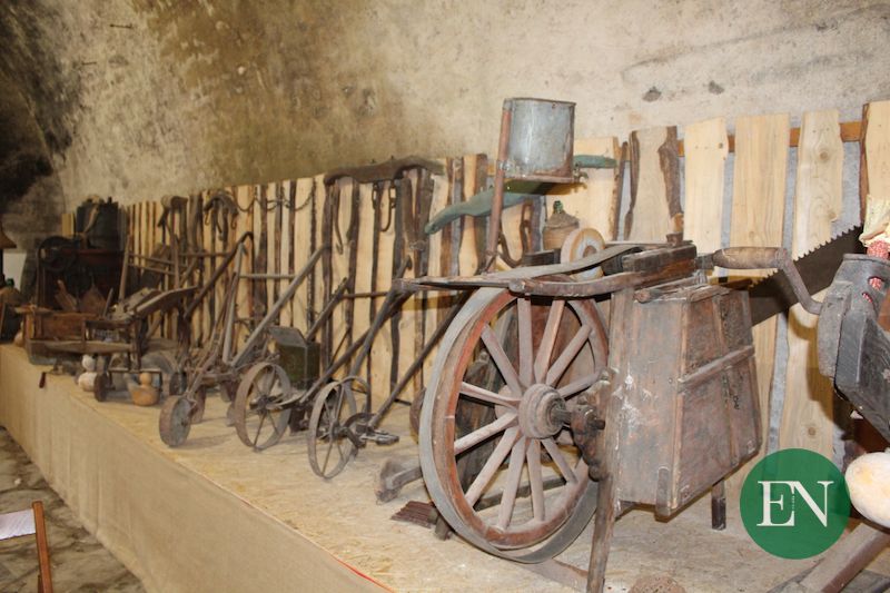 “Qui al museo ci sono pezzi unici. Come lo strumento per spaccare la canapa, tutti i vari arnesi per la raccolta del fieno, il magnano per il fuoco, la pela castagna secche che toglie il guscio dalle castagne, alcune trebbiatrici di fine ‘800. Poi c’è il prototipo della prima mietitrice a cui il re d’Inghilterra aveva conferito una medaglia d’ora a chi l’inventò. Poi altri strumenti contadini come il tritaforaggio, il torchio, diverse sgranatrici, lo staio e gli aratri. Insomma tutti quelli che i nostri nonni usavano nella loro vita quotidiana contadina”.