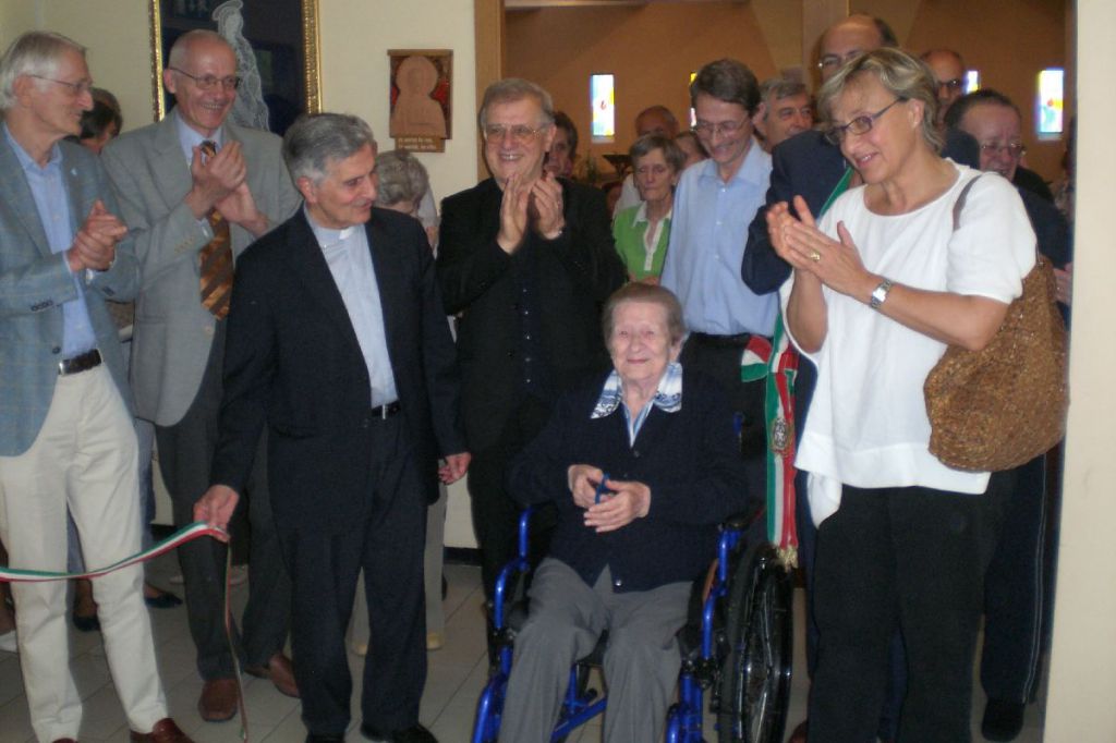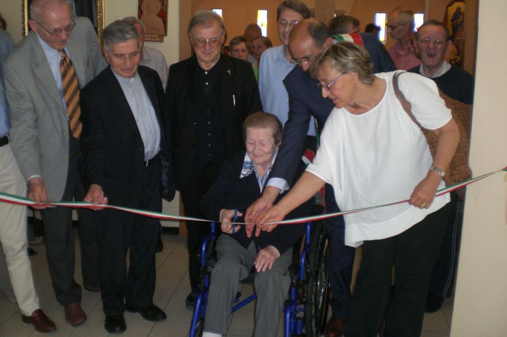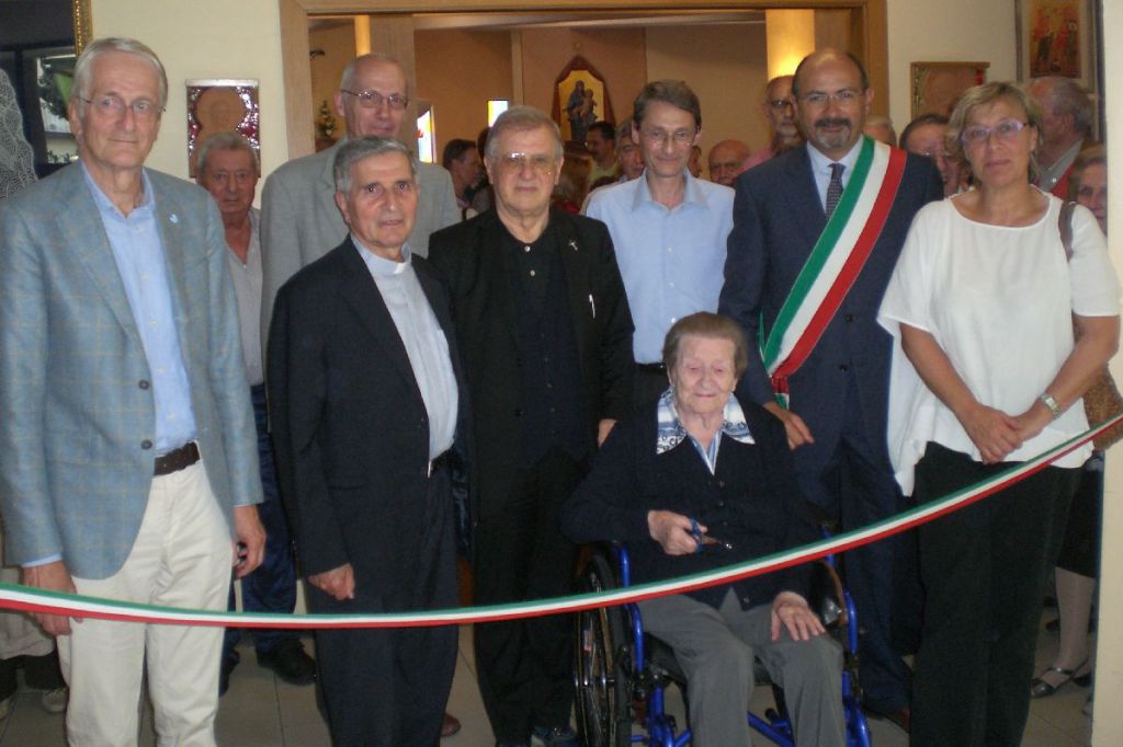 Dopo la presentazione nella cappella di Casa Prina, la mostra è stata inaugurata con il taglio del nastro fatto da un’ospite della struttura insieme alle autorità e poi tutti i presenti hanno potuto visitarla. E’ intervenuta anche Veronica Airoldi.