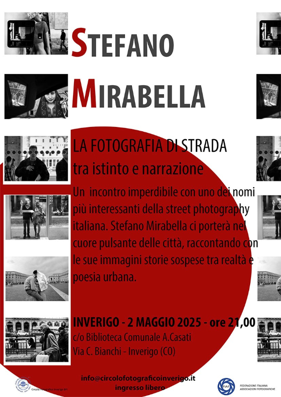 INVERIGO – Il Circolo Fotografico di Inverigo propone un interessante workshop di due giorni dedicato alla Street Photography insieme al fotografo romano Stefano Mirabella. Gli eventi si terranno sabato 3 e domenica 4 maggio nella sede delle associazioni di Inverigo di via degli Alpini 2.