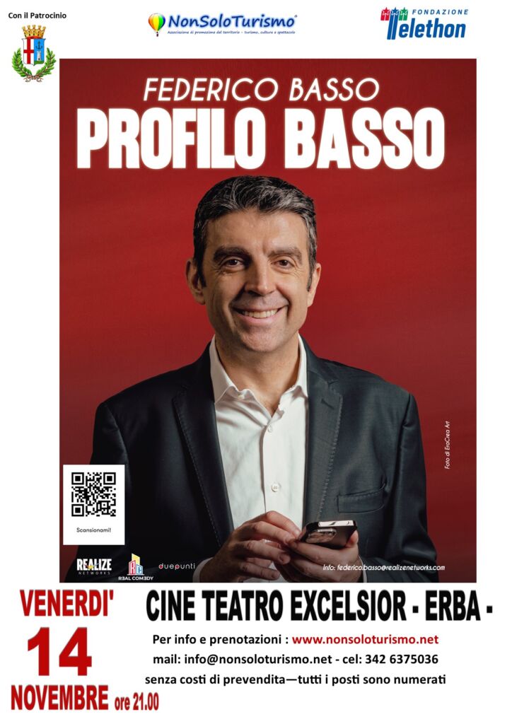 ERBA – Ultimi posti per lo spettacolo di Federico Basso ‘Profilo Basso’ in programma venerdì 14 novembre presso il Cine Teatro Excelsior di Erba.