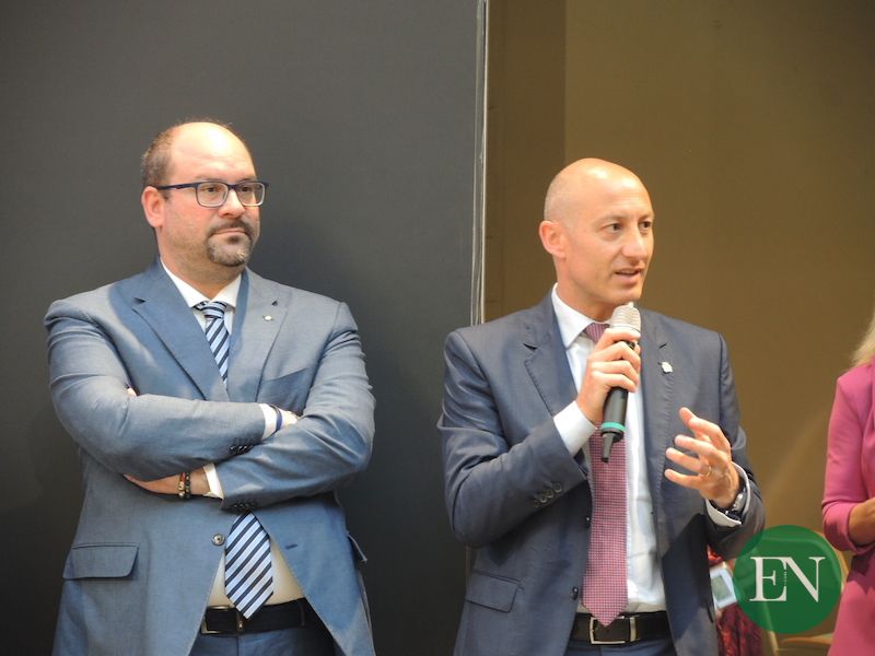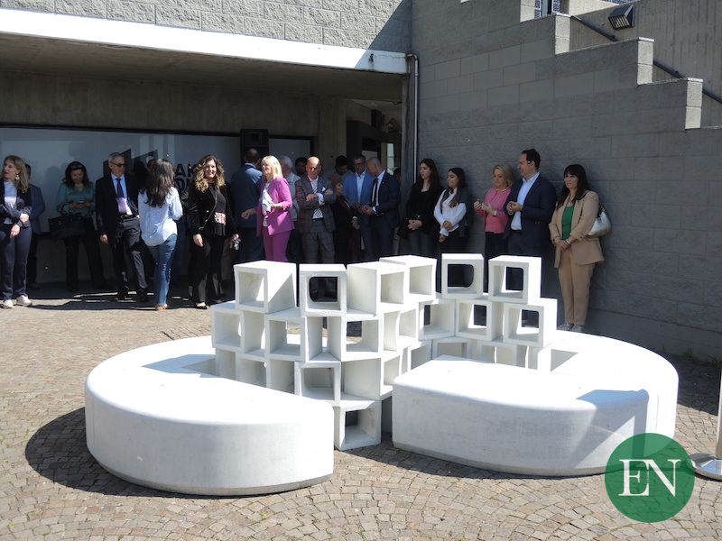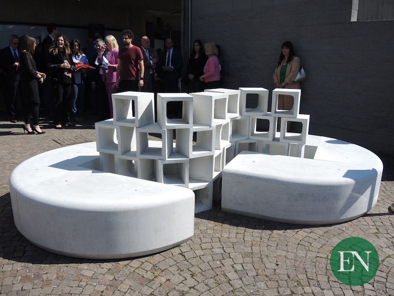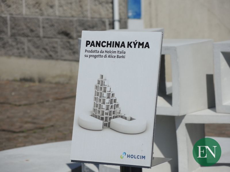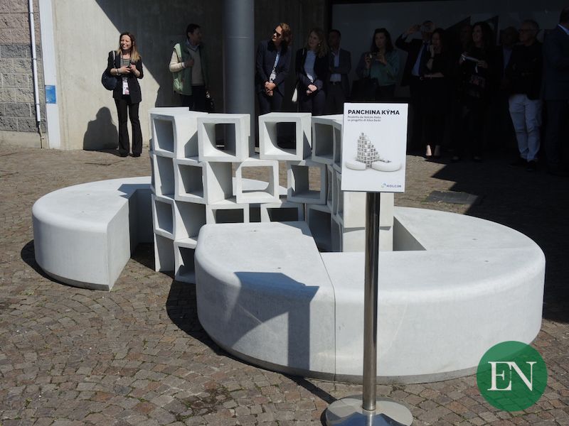 I tagli del nastro stamattina sono stati due: oltre all’apertura della Fiera infatti è stata inaugurata l’opera di design urbano dell’architetta Alice Barki donata dalla Holcim, una panchina di cemento, simbolo di sostenibilità ed occupazione, come spiegato dall’Amministratore Delegato Lucio Greco.