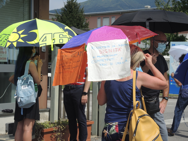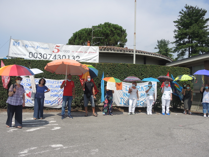 BOSISIO PARINI – “Fino al 31 agosto saremo qui, in presidio permanente, per rivendicare i diritti e il rispetto della dignità delle lavoratrici e dei lavoratori dell’Associazione La Nostra Famiglia. Il contratto non può essere cambiato”. Così ha dichiarato Marina Crippa (Rsu La Nostra Famiglia) presente questa mattina, mercoledì 13 agosto, alla mobilitazione indetta dai sindacati fuori dalla sede della Nostra Famiglia. Con lei c’erano anche Catello Tramparulo, Segretario FP Cgil Lecco e diversi lavoratori che si sono uniti alla protesta, muniti di ombrelli colorati.