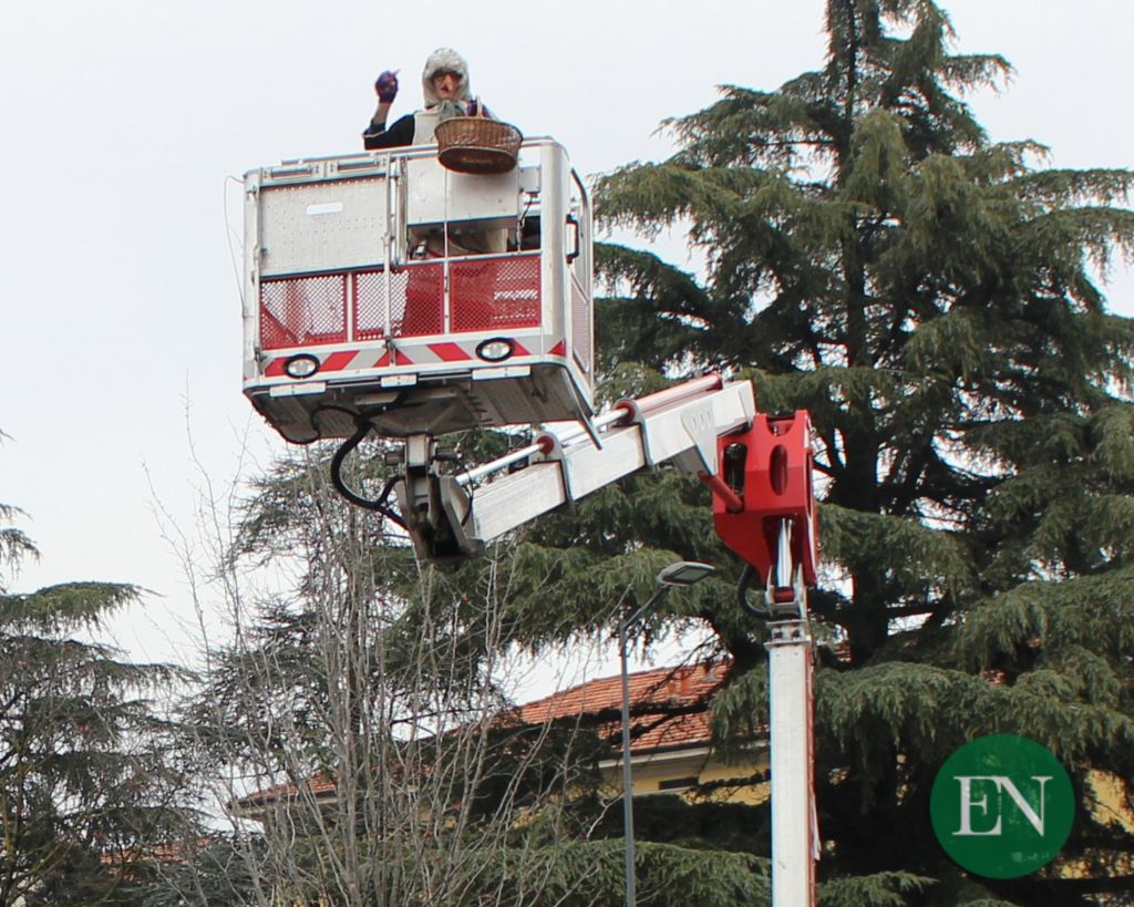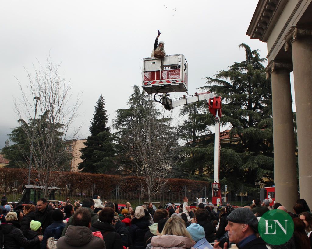 Come da tradizione, la vecchina più famosa del mondo è volata poi in cielo grazie all’Autogru dei Vigili del Fuoco, lanciando caramelle e doni, sopra agli occhi sognanti dei bambini.
