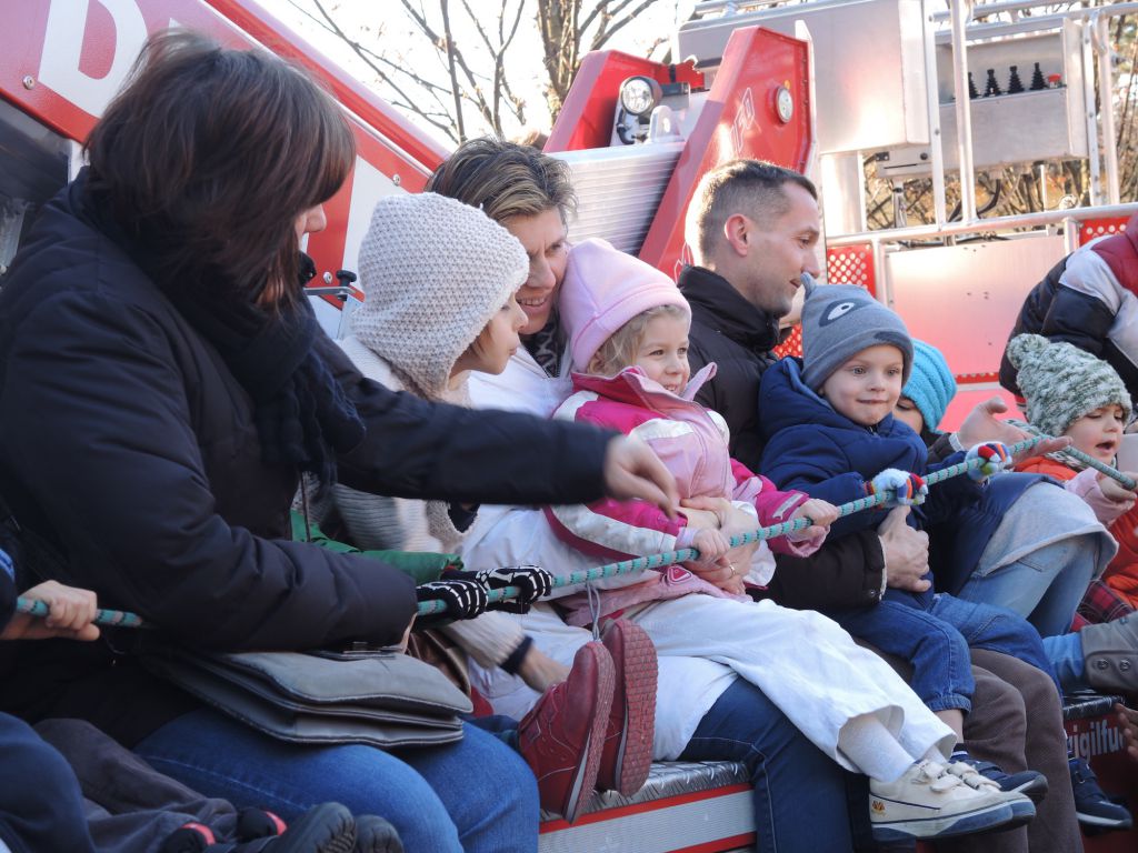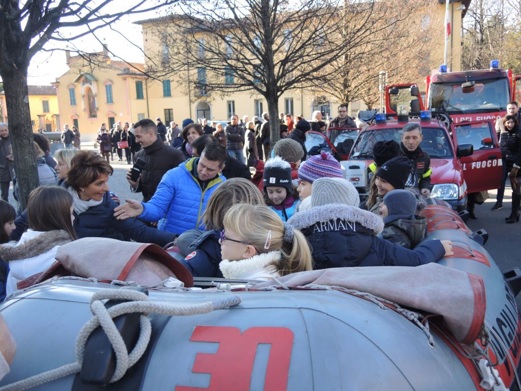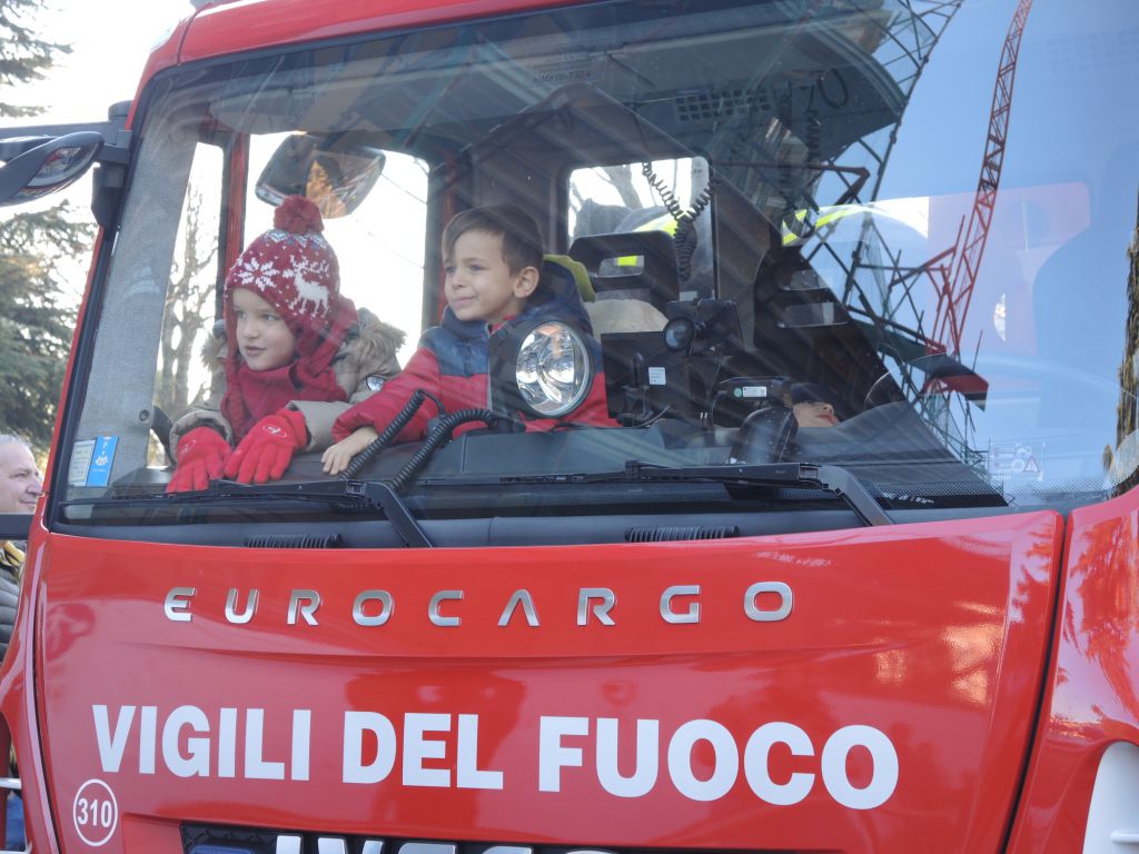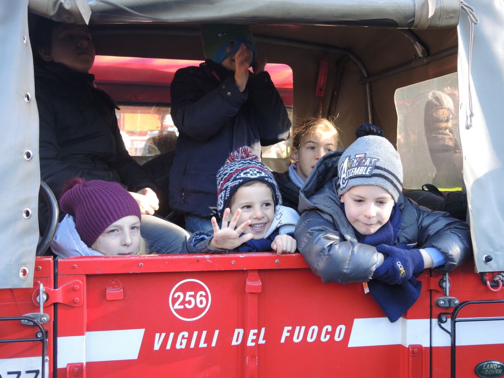 I bimbi hanno quindi preso il loro posto sui diversi mezzi dei vigili del fuoco predisposti per il corteo per le vie della città fino alla caserma, partito poco dopo le 11.