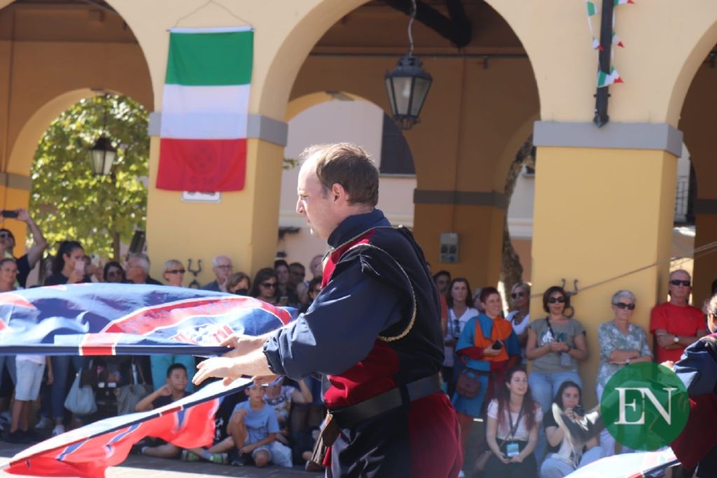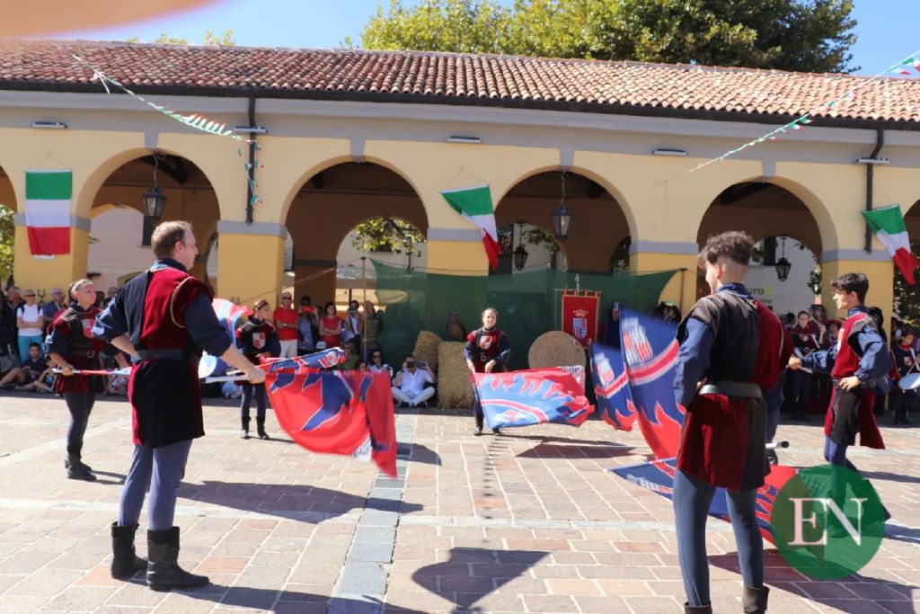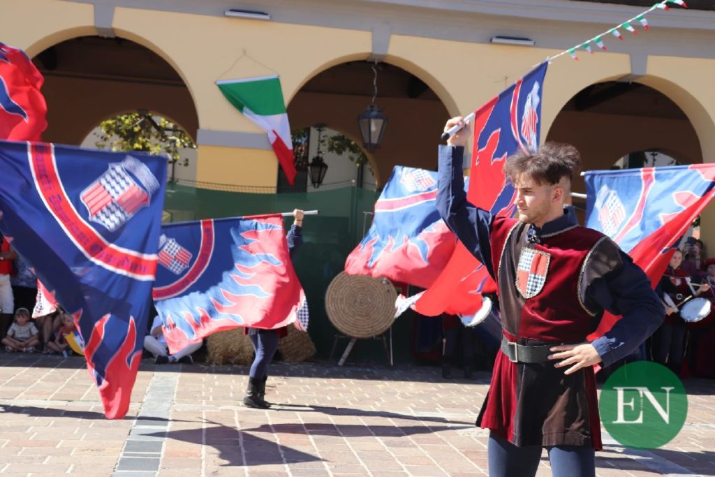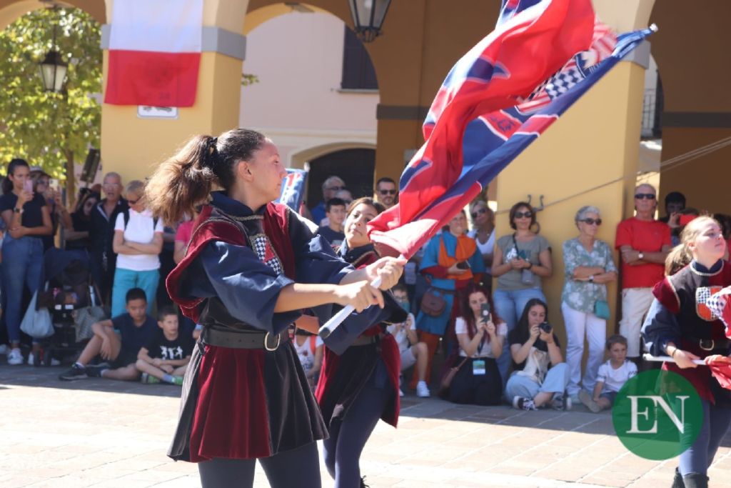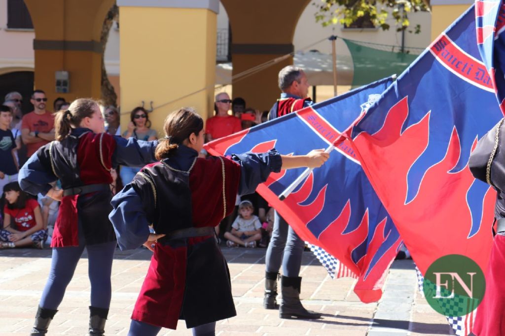 Proprio la piazza del Mercato ha fatto da cornice allo spettacolo degli sbandieratori e musici di San Damiano D’Asti, fra i gruppi storici più rinomati nella Penisola, e la rievocazione del torneo tra i Comuni della Corte di Casale.