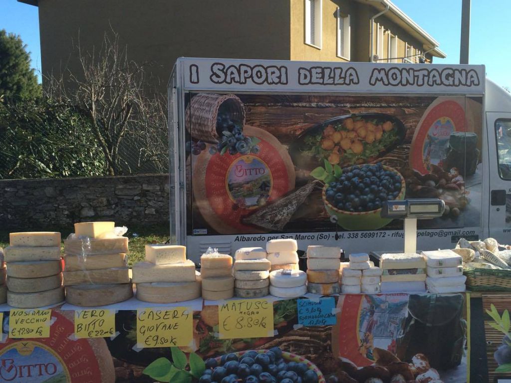 Al fianco delle comuni categorie merceologiche, troviamo ancora alcune figure tradizionali, come la bancarella delle castagne o “marroni”, il miele, gli utensili in legno, formaggi e salumi della tradizione lombarda.