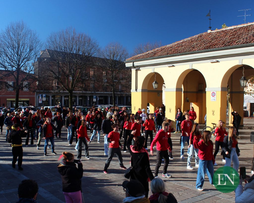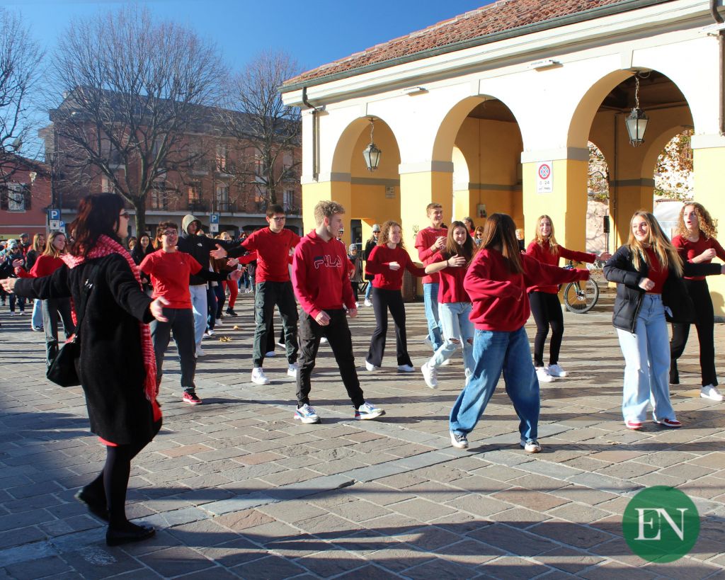 ERBA – Grande partecipazione quella registrata in Piazza Mercato nella mattinata di oggi, sabato, dove la cittadinanza si è riunita per prendere parte, sulle note di “Respect” di Aretha Franklin, ad un Flash Mob, simbolo di solidarietà e vicinanza nei confronti di tutte le donne vittima di violenza. Notevole la presenza dei giovani, in particolar modo di alcune classi del Liceo Carlo Porta di Erba, che oggi, Giornata Internazionale per l’eliminazione della violenza contro le donne. hanno deciso di farsi sentire e scendere in campo per dire basta.