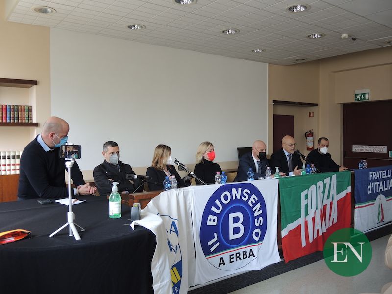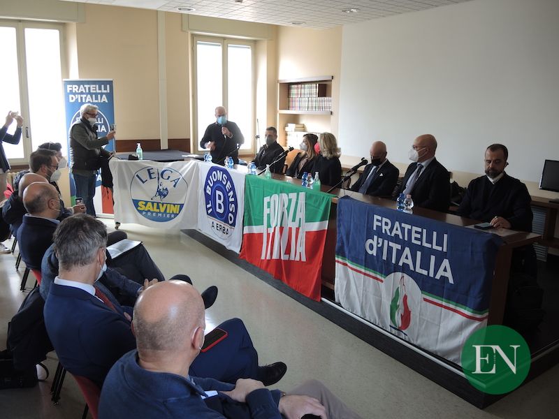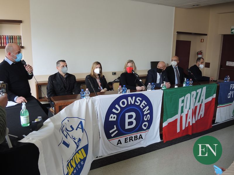 Al tavolo con Caprani c’erano il sindaco di Erba uscente Veronica Airoldi, i rappresentanti delle civiche Il Buonsenso, Alessio Nava, e Erba Primaditutto, Michele Riva, per la Lega Laura Santin e per Fratelli d’Italia Stefano Molinari. In sala, il presidente del consiglio regionale Alessandro Fermi, il Senatore Alessio Butti (FdI), il deputato Eugenio Zoffili e la Senatrice Erica Rivolta (Lega).