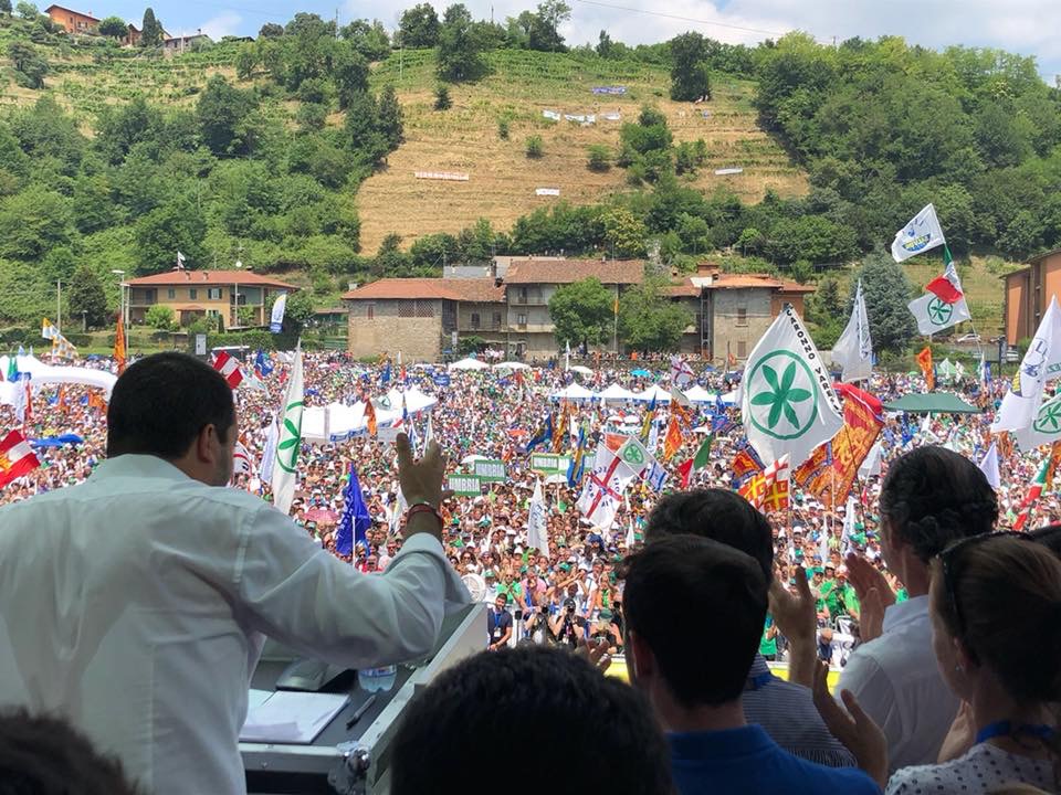 Il momento più atteso è stato il discorso del leader Matteo Salvini, Ministro dell’Interno e Vicepremier, che ha raggiunto il pratone e il raduno intorno alle 10 per poi prendere parola intorno alle 10.30.