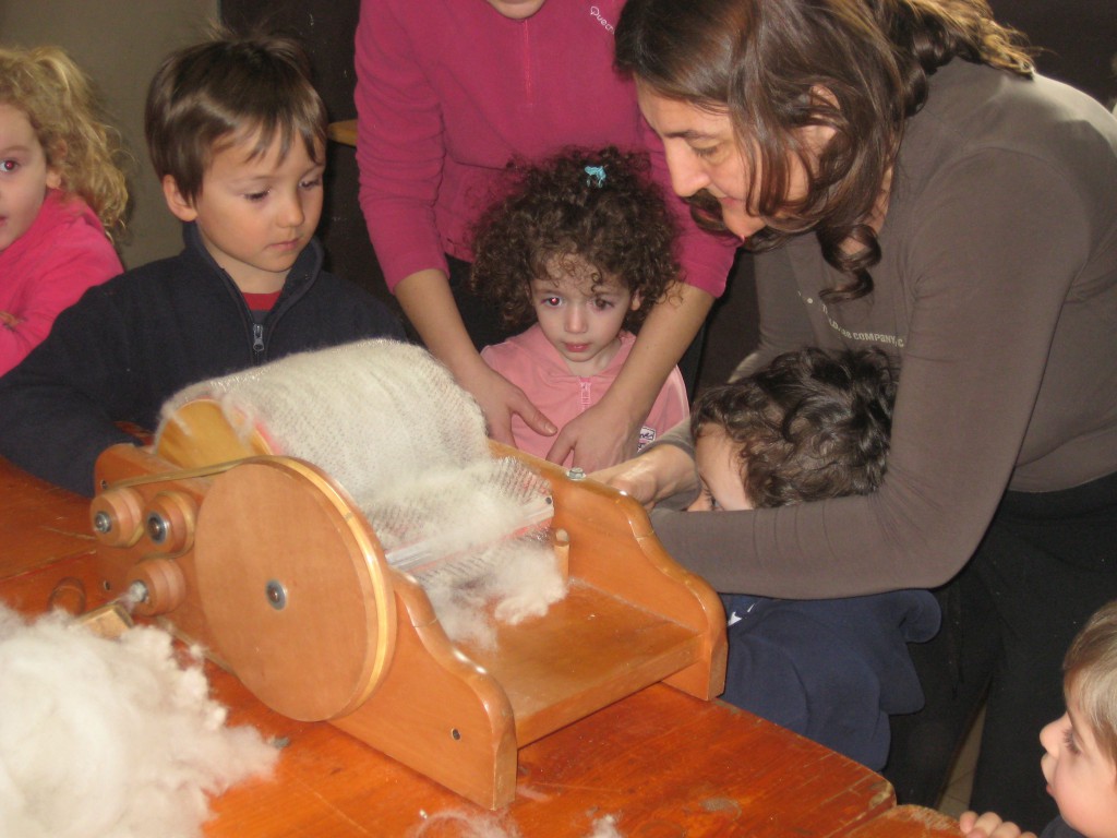 La visita aveva l’ obbiettivo di avvicinare i bambini alla conoscenza della lana e del suo utilizzo. Il laboratorio didattico li ha visti impegnati nella cardatura e nella tintura della lana.