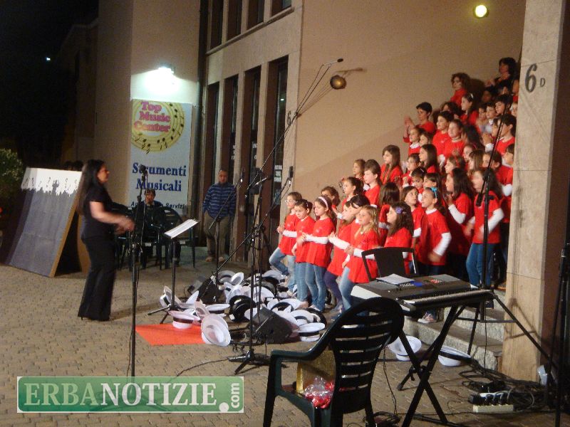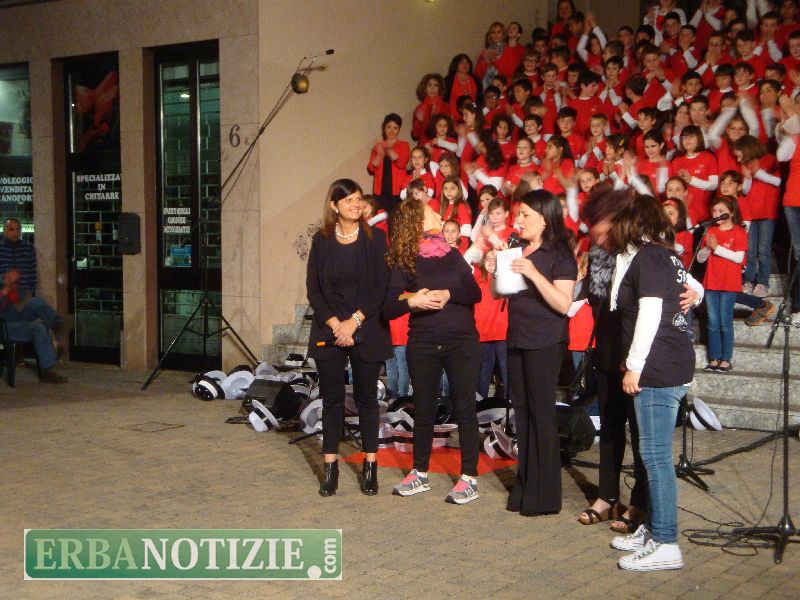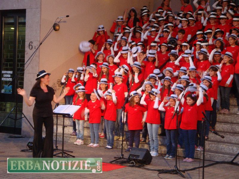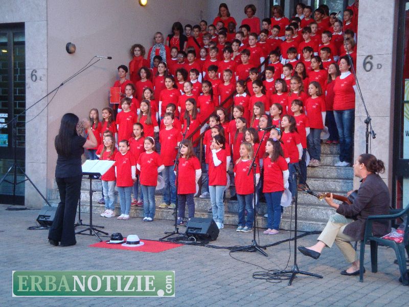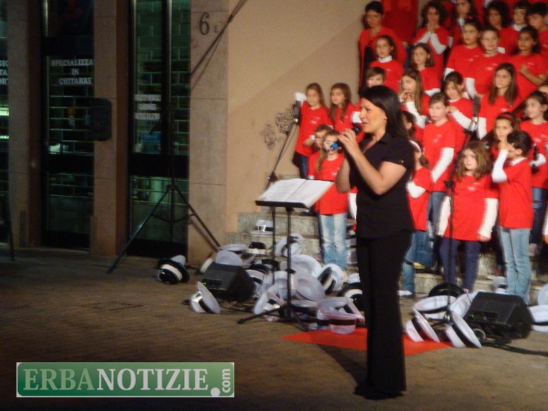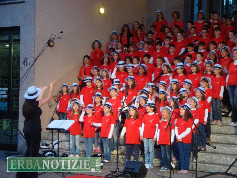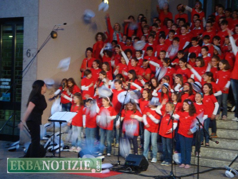 ERBA – Tante emozioni alla settima edizione del concerto finale del “Pim Pum Coro” formato dalle classi terze di tutte le primarie dell’Istituto Comprensivo “G. Puecher” (Arcellasco, Battisti, Buccinigo e Crevenna) protagoniste del percorso musicale. Applausi da parte dei 400 e più spettatori che hanno assistito allo spettacolo che si è svolto ieri sera, mercoledì, in Piazza Mercato a Erba e che ha visto protagoniste le 106 bellissime voci dirette impeccabilmente dall’insegnante di musica dell’istituto Laura Maria Ratti.