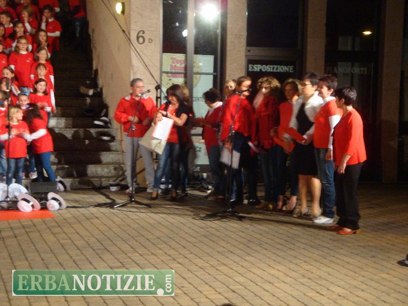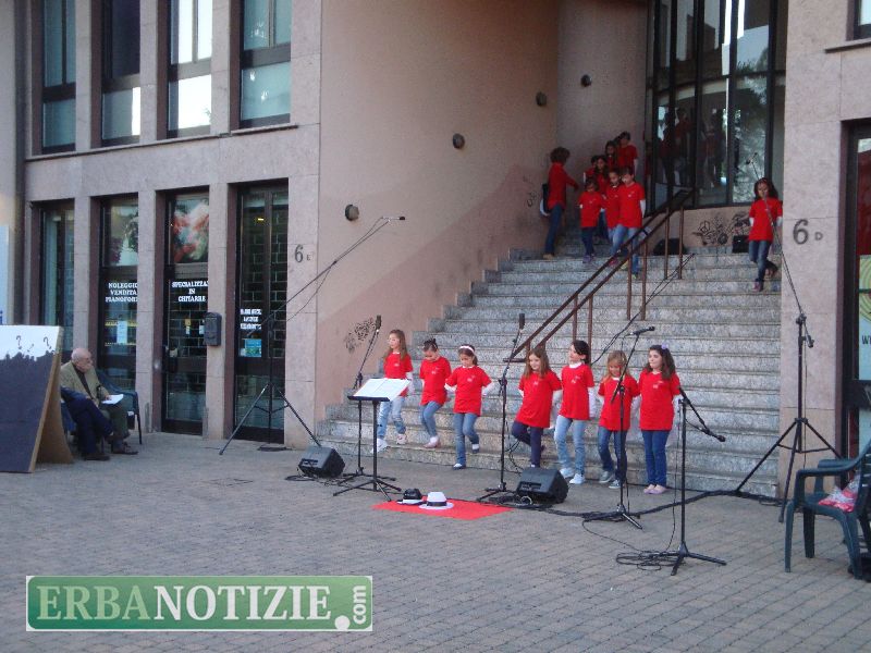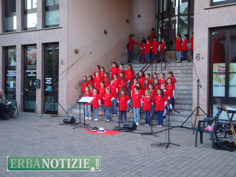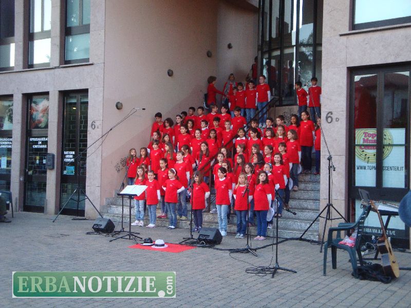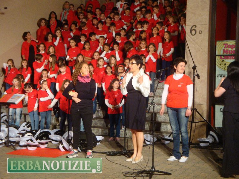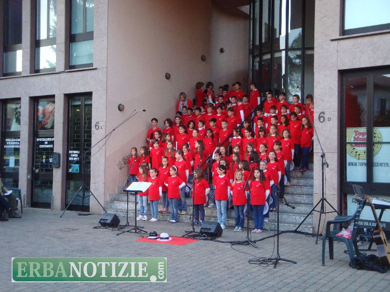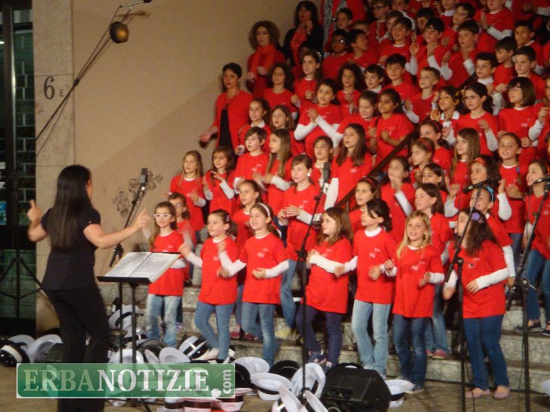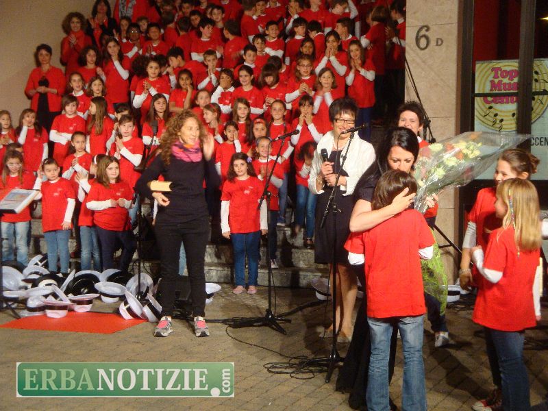 ERBA – Tante emozioni alla settima edizione del concerto finale del “Pim Pum Coro” formato dalle classi terze di tutte le primarie dell’Istituto Comprensivo “G. Puecher” (Arcellasco, Battisti, Buccinigo e Crevenna) protagoniste del percorso musicale. Applausi da parte dei 400 e più spettatori che hanno assistito allo spettacolo che si è svolto ieri sera, mercoledì, in Piazza Mercato a Erba e che ha visto protagoniste le 106 bellissime voci dirette impeccabilmente dall’insegnante di musica dell’istituto Laura Maria Ratti.