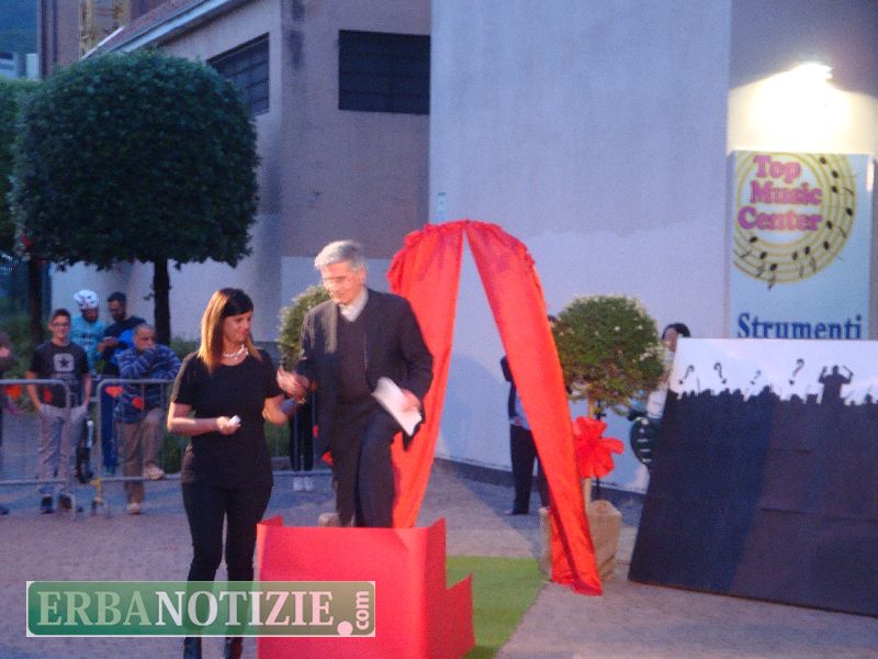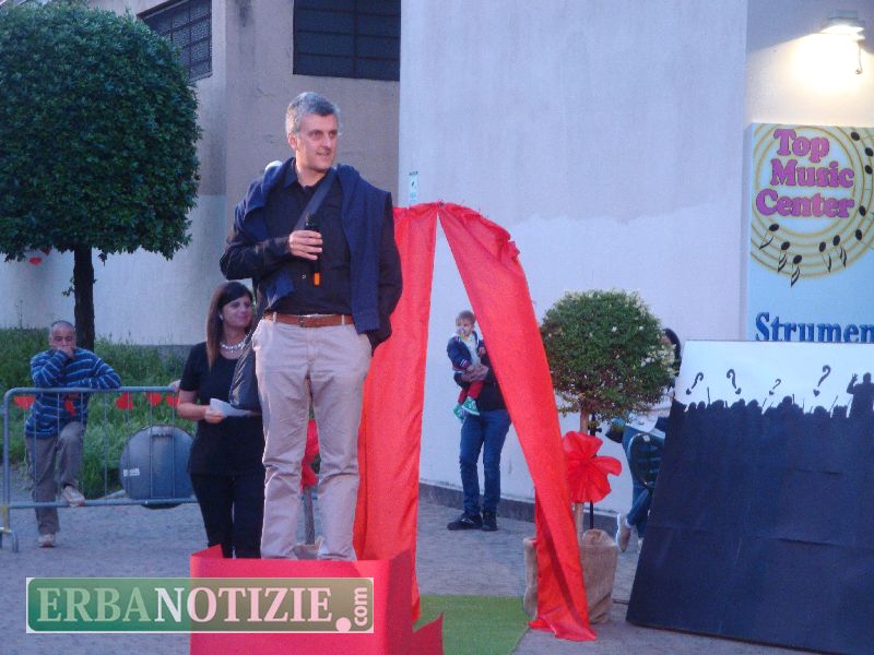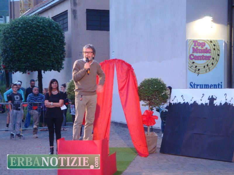 Il professor Carlo Calvi, dirigente scolastico di Erba, in ricordo della sua infanzia canterina per le aule della sua vecchia scuola, ha presentato “Il tuo bacio è come un rock” di Adriano Celentano.
