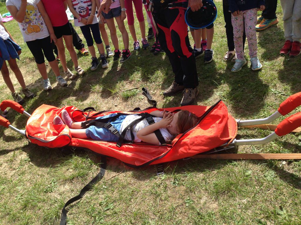 I bambini hanno provato la teleferica, il paranco e la barella portantina. Sono scesi con la carrucola sospesi ad una corda e assicurati con caschetto ed imbragatura, sono stati sollevati su una pianta con dei cavi e hanno colto i segreti per trasportare un ferito su una barella.