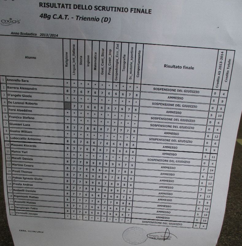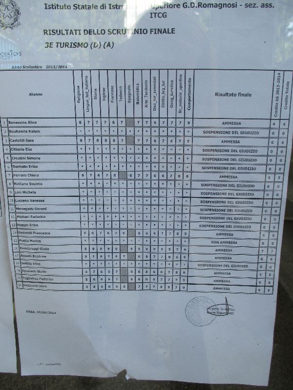 Speciale scuole 2014: i tabelloni dell’istituto Romagnosi