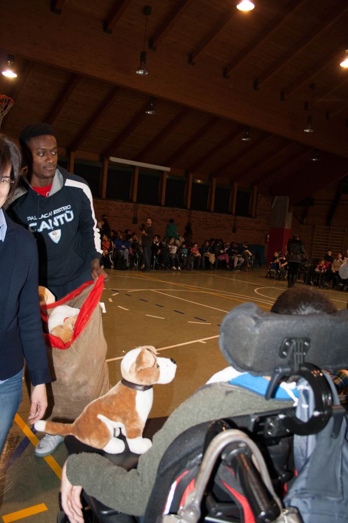 “Abbiamo raccolto i peluche nella partita del 21 dicembre scorso contro la ReyerVenezia – spiega Luca Rossini, responsabile dell’Ufficio Stampa Pallacanestro Cantù – Dopo il primo canestro gli spettatori hanno lanciato i peluche in campo, noi li abbiamo raccolti e portati qui. L’amicizia con La Nostra Famiglia continua: i nostri istruttori, insieme a quelli di Briantea84, tengono un corso di avviamento alla pallacanestro per i bambini con disabilità chiamato Scuola, Gioco Basket, nell’ambito del progetto dell’Eurolega ONETEAM”.