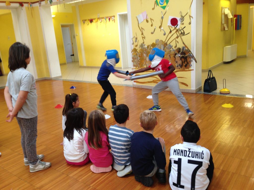 Per qualche ora i piccolo si sono sentiti dei campioni olimpici, cavalieri e principi senza tempo, protagonisti di impegnativi duelli. “Hanno giocato con la loro immaginazione – hanno detto le maestre – ma anche imparato a conoscere questo sport: le armi che si utilizzano e le sue regole”.