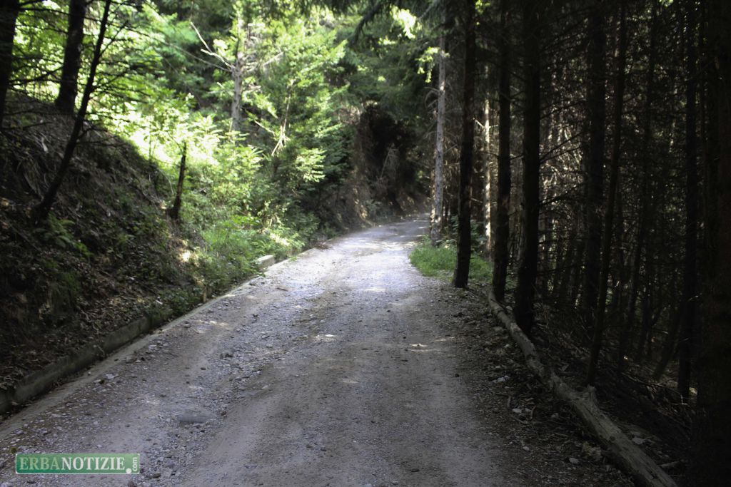 Inizialmente si affronta un dislivello di circa 200 metri percorrendo l’unica via presente (cementificata) che si snoda nel bosco in una serie di tornanti.
