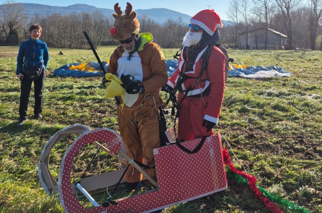 SUELLO – Bella iniziativa quella organizzata ieri, sabato 21 dicembre, dallo Scurbatt Club Parapendio. Tantissimi bambini sono rimasti incantati, con il naso all’insù, per vedere l’arrivo di Babbo Natale in parapendio, con tanto di slitta. Gli aiutanti di Babbo Natale hanno distribuito dolci e caramelle a tutti i piccini.